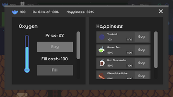You are chosen for mining Andromeda crystals. Please proceed to collect the crystals and place them into the PC (shop) and in return we will provide you oxygen and food. Don't forget to empty soil into the ACID VAT (empty bag). Although you don't need food to survive due to the technology we have implemented in your suit, those will make you happy. We suggest you to focus on oxygen and of course produce more crystals for the empire.